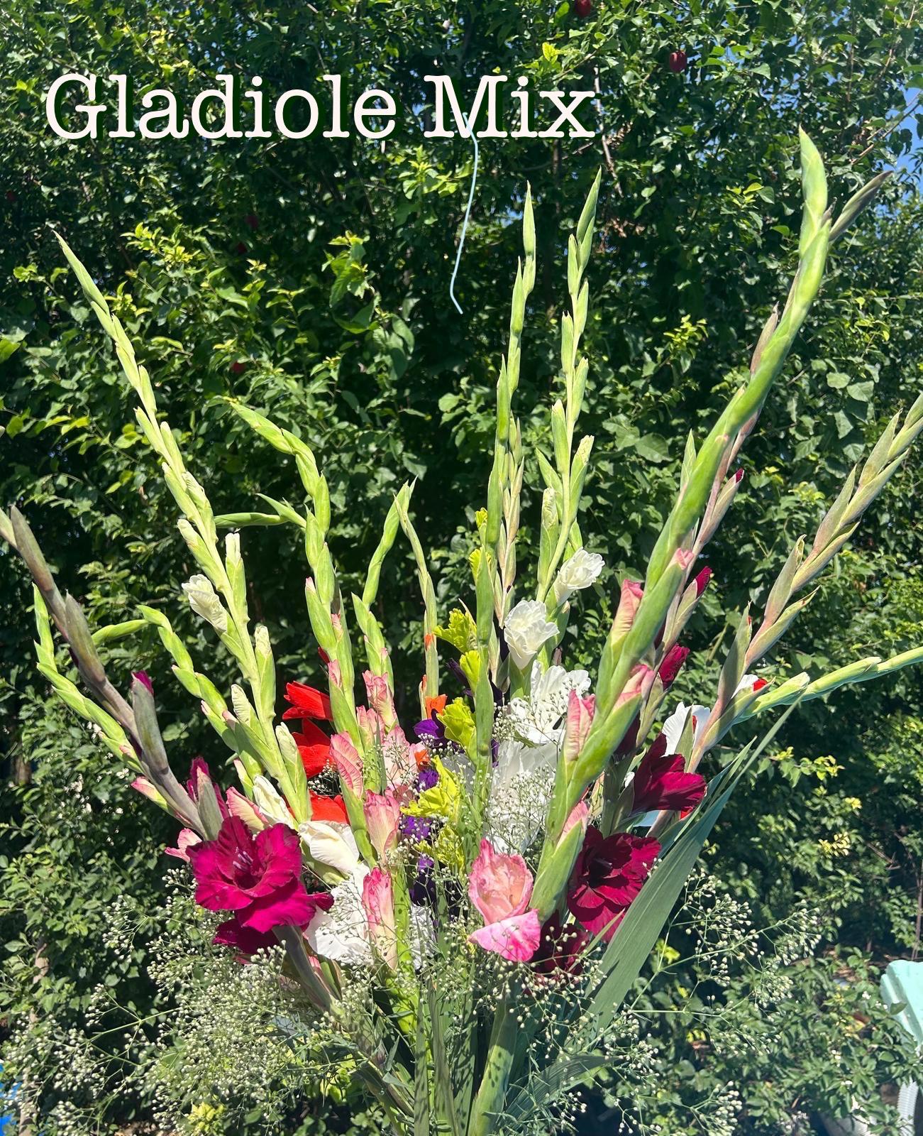 Buchete florale, bulbi de gladiole, cale și dalii.